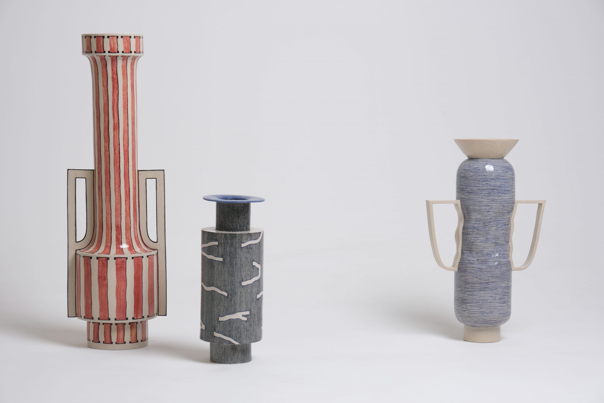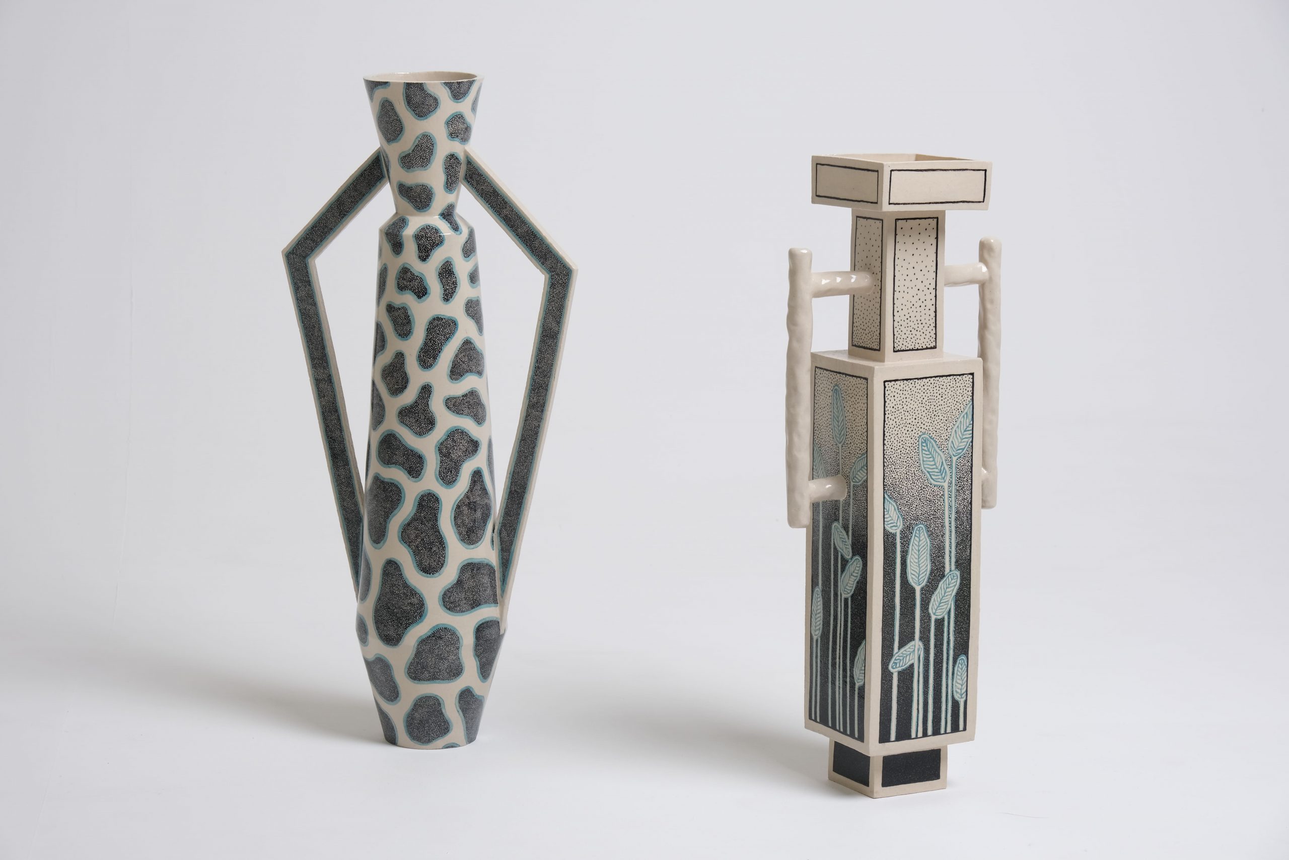 With his series of amphorae, the artist transports us through time, boldly reinterpreting forms and codes from different eras.
